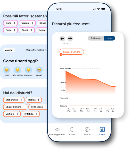 L'app femfeel è un software con diverse funzioni. Non tutte le funzioni dell'app femfeel sono un dispositivo medico. Solo il diario, ovvero la funzione di monitoraggio e le relative valutazioni, fanno parte del dispositivo medico.